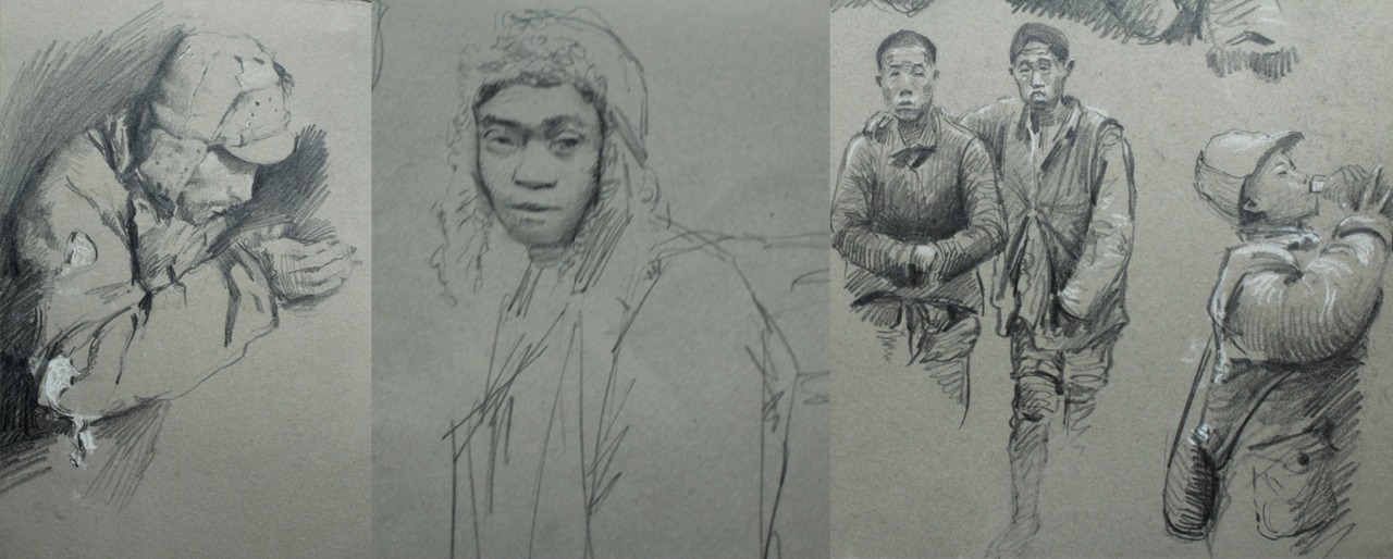J'ai trouvé des photos de la guerre de 1939-40 dans la bibliothèque de mon université. Les reproductions sont interdites et on ne peut pas prendre de photos. Je les ai donc copiées en dessinant. Il s'agit de soldats chinois pendant la bataille de ShangHai.